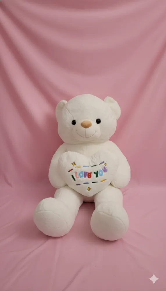 Tierno oso de más de un metro de largo, de color rosado con excelente calidad de peluche.
