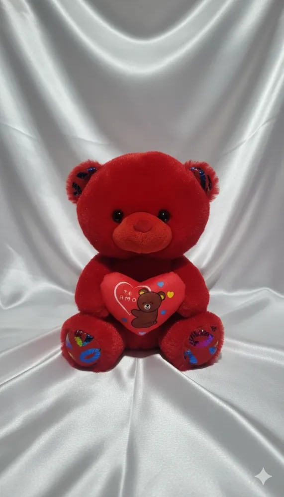 Peluche chico, en color rojo, ideal para acompañar un lindo ramo de flores y regalar mucha ternura.